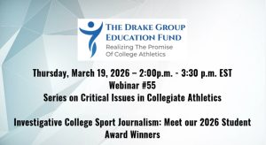 The student reporters who took top prizes in the 2025 Drake Group Education Fund Student Journalism Prize for Investigative Reporting on Intercollegiate Athletics share their reporting and … Read more - WEBINAR #45 – Improving Graduation Rates of Division I Basketball and Football Players – Whose Responsibility and What Strategies Work?